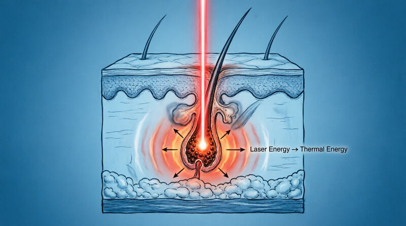 Laser Hair Removal uses concentrated light energy that is absorbed by the pigment (melanin) in the hair.